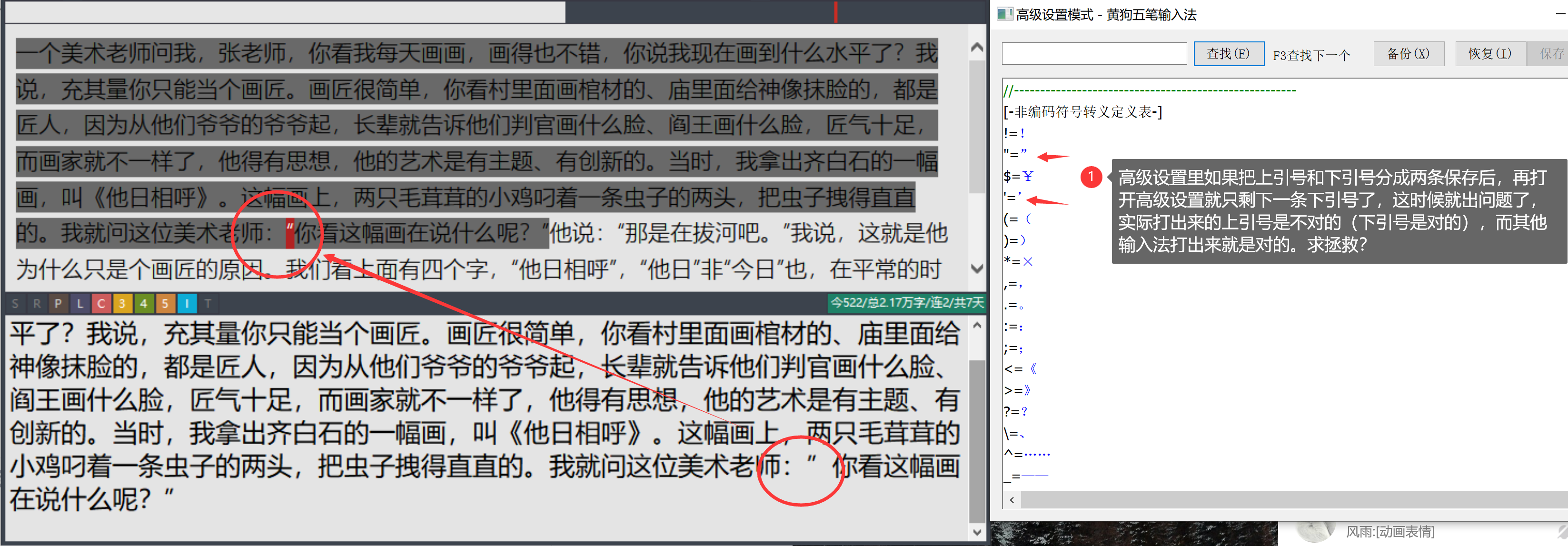 你自己下载一个精灵五笔来看它是怎么设置的?多说一句,单个输入的双引号,我见过太多出错的了,不要以为每个录入员都是高手。黄狗的很多思路来自于对现实的思考。