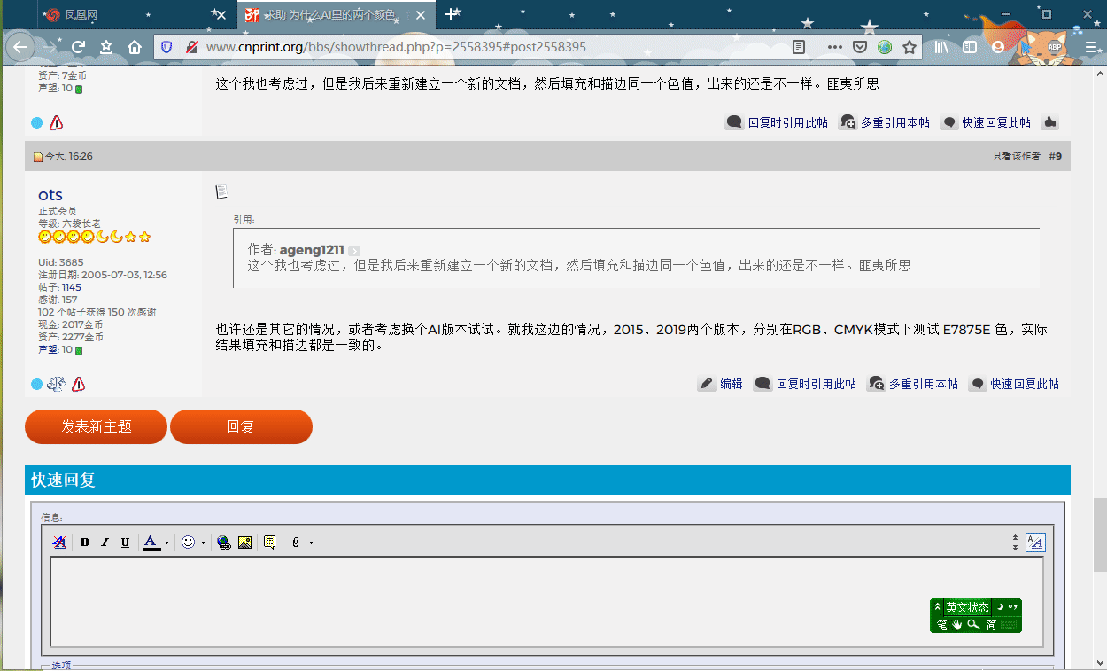 Windows 10+Firefox x64,在中印论坛上回复完某个帖子,此时想要修改内容或者什么,点击这里的“编辑”