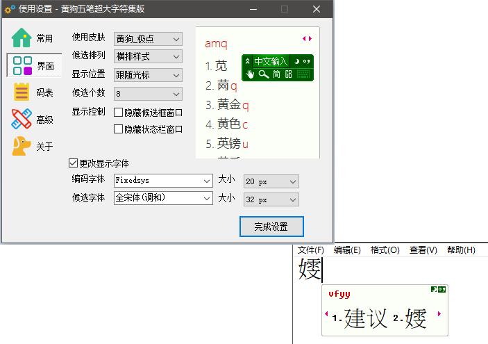 本人主要用于古文编辑,对码表字符齐全很看重,所以找到黄狗五笔超大字符集版,就我所知,在这一点上,目前大陆能与黄狗五笔比肩的,为数不多。