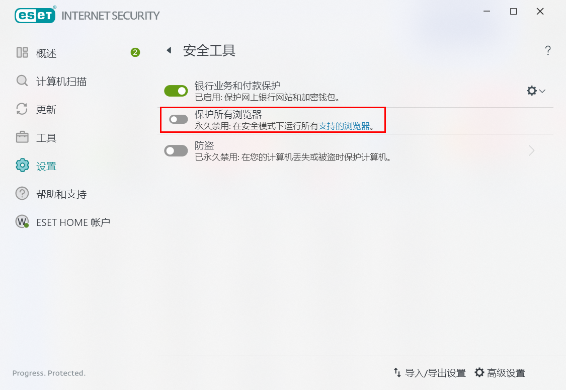 默认 反馈黄狗不能在eset开启「保护所有浏览器的银行业务和付款保护」的条件下使用的问题